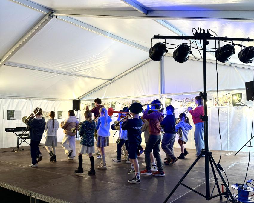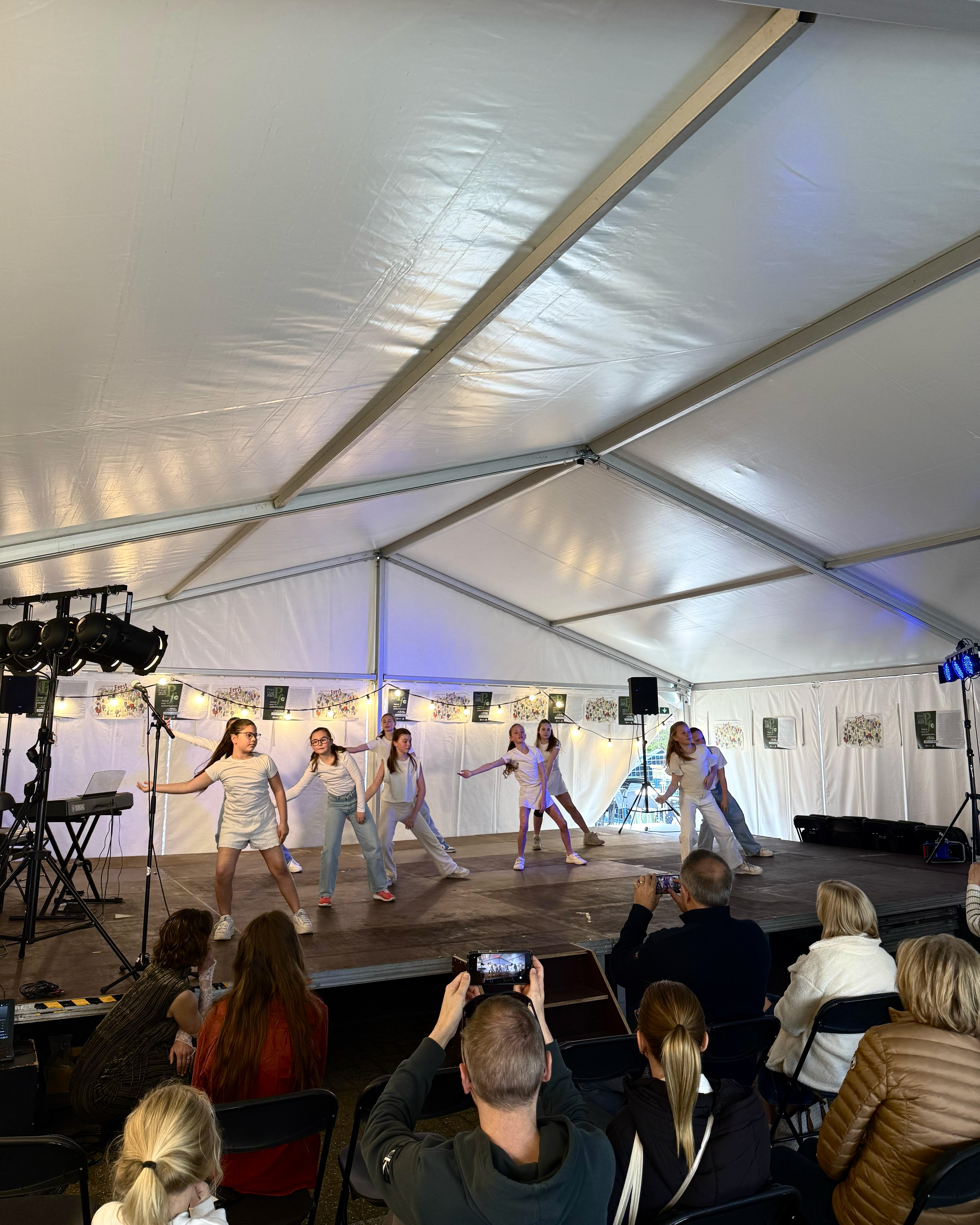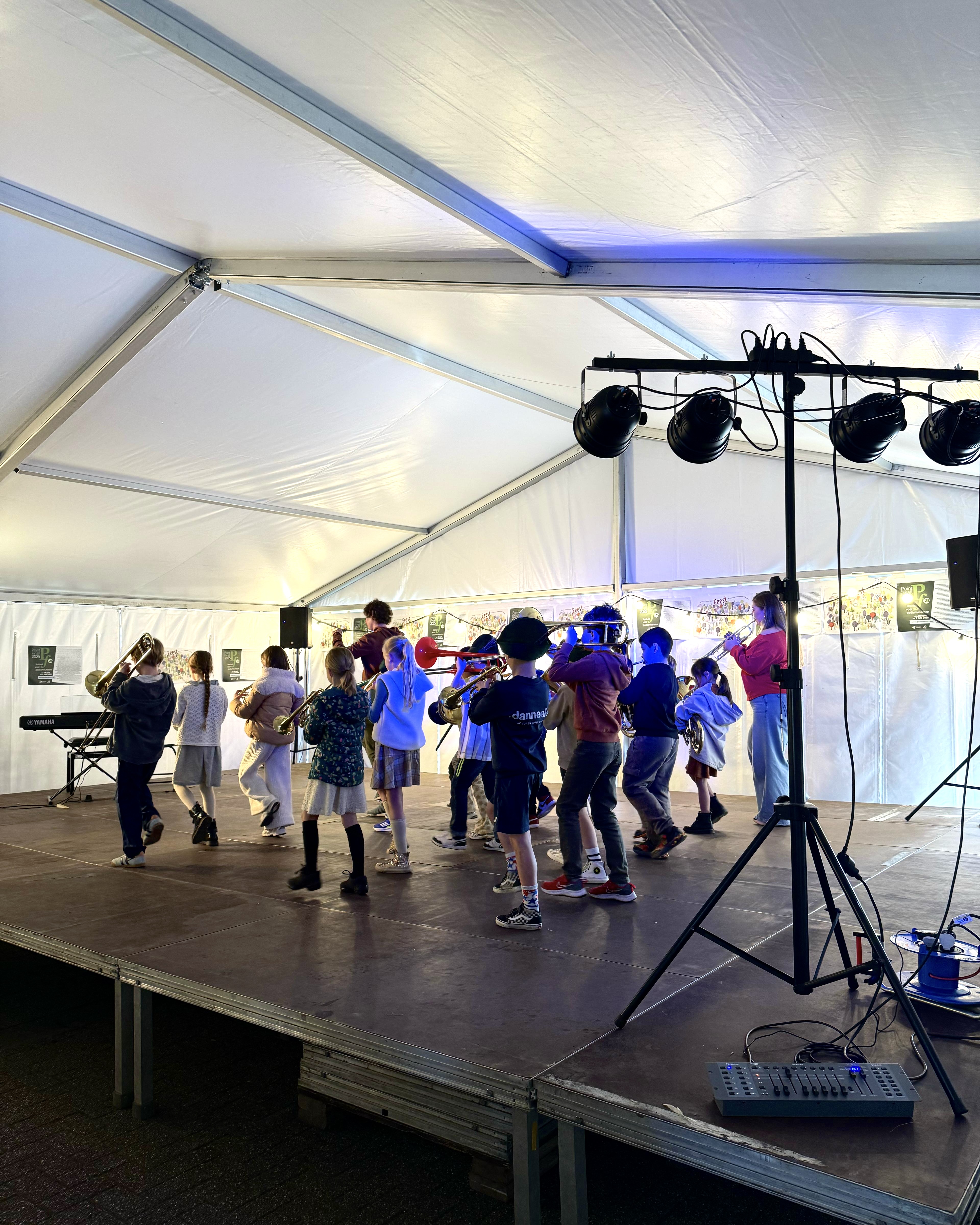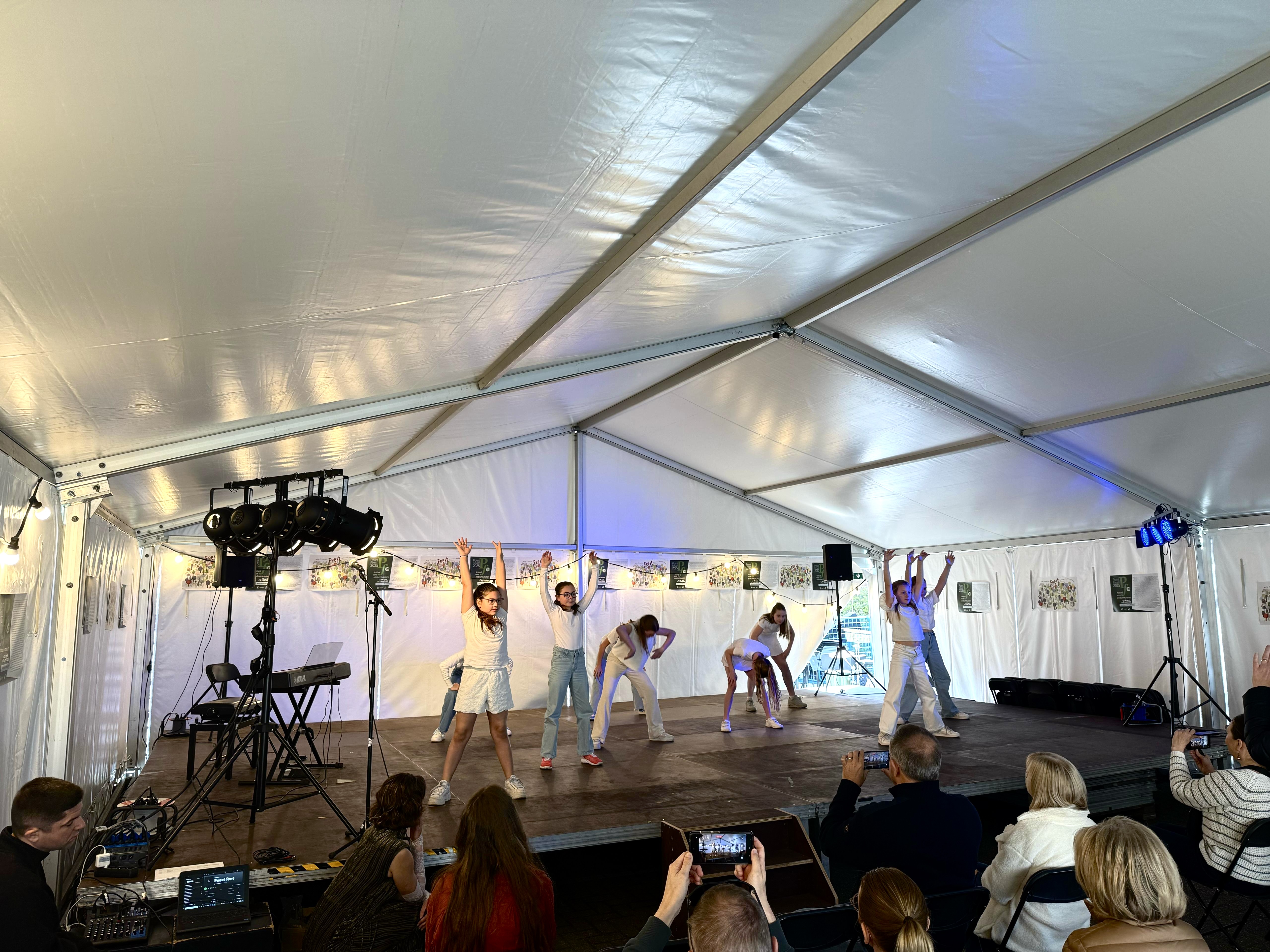 De hele dag lang werden muziekinstrumenten uitgeprobeerd, toneelstukken opgevoerd, dansvoorstellingen in elkaar gestoken en opgetreden in onze Feest-tent. Opnieuw een geslaagde opendeurdag!