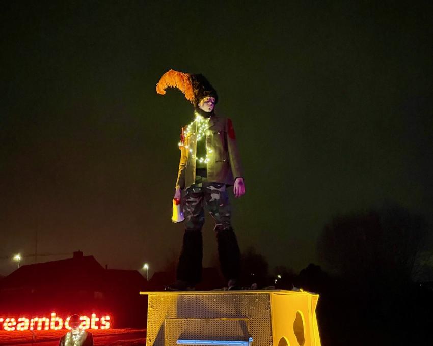 FOTOREPORTAGE Op 25 januari ging de eerste lichtjeswandeling in domein Krekemeersen in Kortemark door. Naast de lichtgevende libellen, zwevende parasols en rode hartjes op het water droeg ook STAP bij aan deze magische avond: de leerlingen performancetheater van Veerle Holsteyns verrasten de bezoekers met een opvoering langs het parcours.