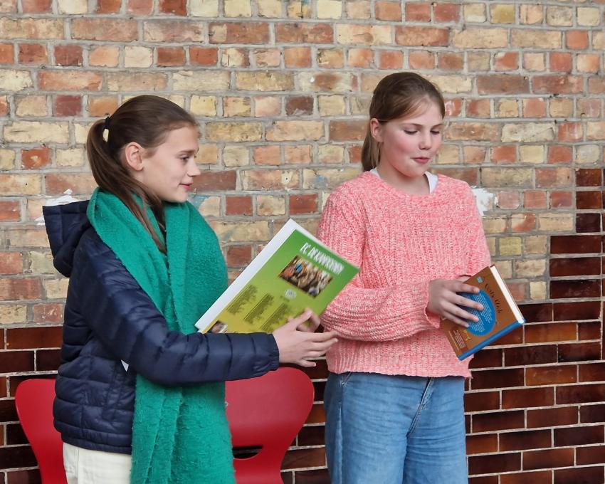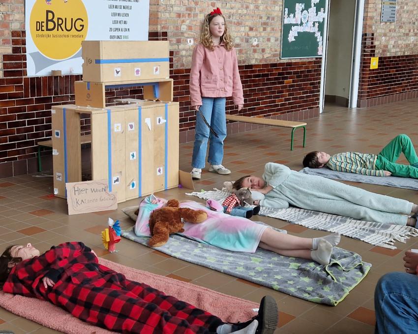 FOTOREPORTAGE Donderdagavond 27/04 in Stedelijke Basisschool De Brug speelden de leerlingen bij Shirley Sintobin 4 kleine stukjes voor publiek: 'Katarina Kietelkous', 'Buurman leest een boek', 'Ijsje' en 'Het allermooiste ei'. En wat deden ze dat goed!